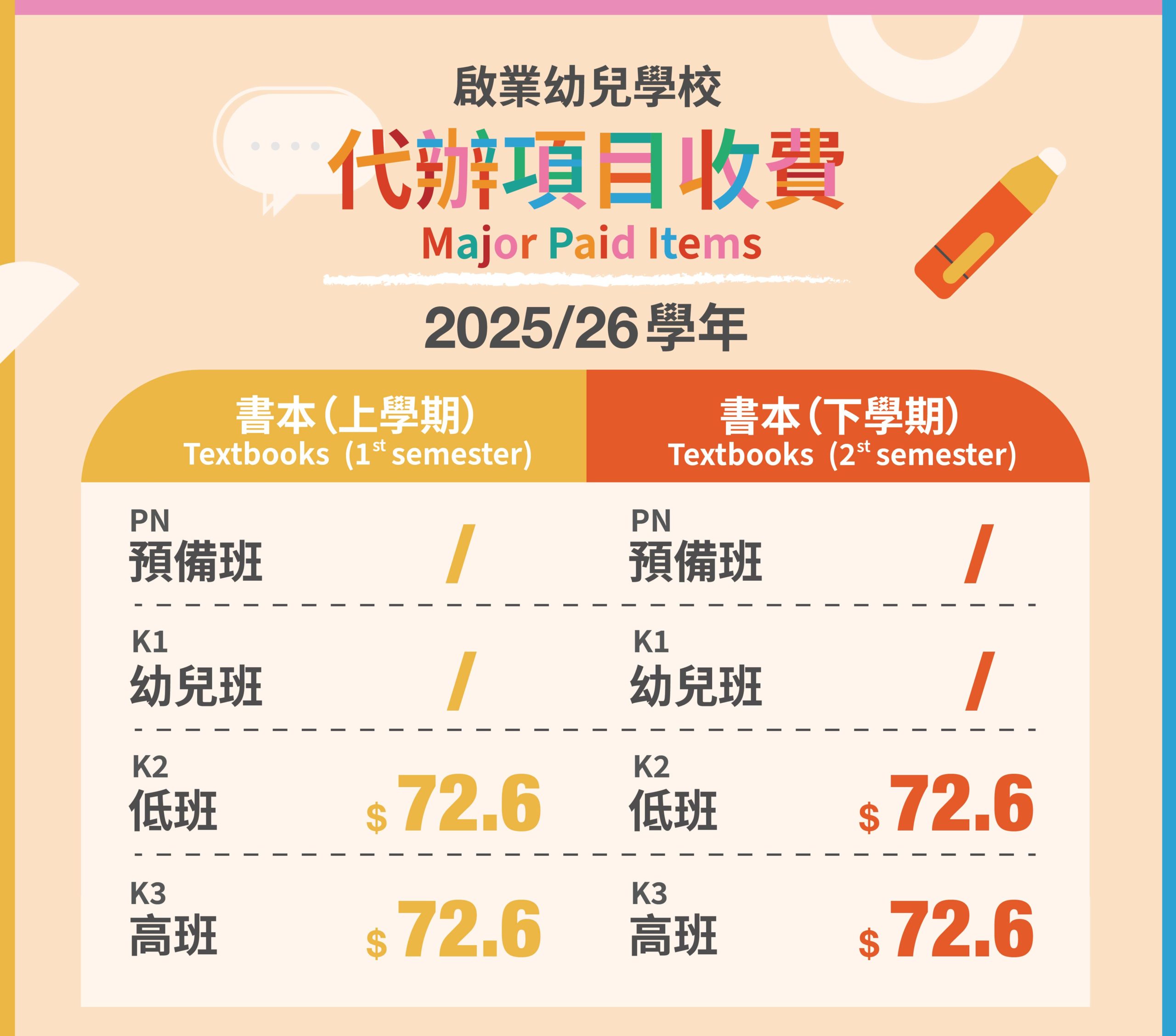 Major Paid Items (1st semester & 2st semester)